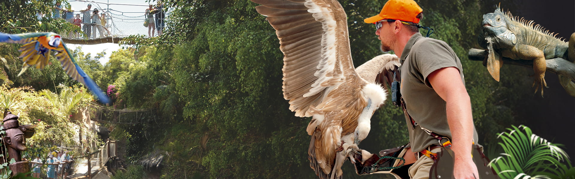 Es ist der einzige Dschungel in Europa mit wilder Vegetation und beherbergt auf 75.000 Quadratmetern mehr als 400 Tiere und über 100 verschiedene Arten. Sie können die 2 unglaublichen Shows mit Seelöwen und Raubvögeln nicht verpassen. Füttern Sie Humboldt-Pinguine, Waschbären und Nasenbären. Adler, Falken, Geier, Marabus, Kraniche, Ibisse, Flamingos, Schwäne, Störche, Papageien, Aras, Papageien, Sittiche, Tukane, Kasuare und eine Vielzahl exotischer Vögel, die mit ihrem Können unserem kleinen Paradies eine künstlerische Note verleihen.