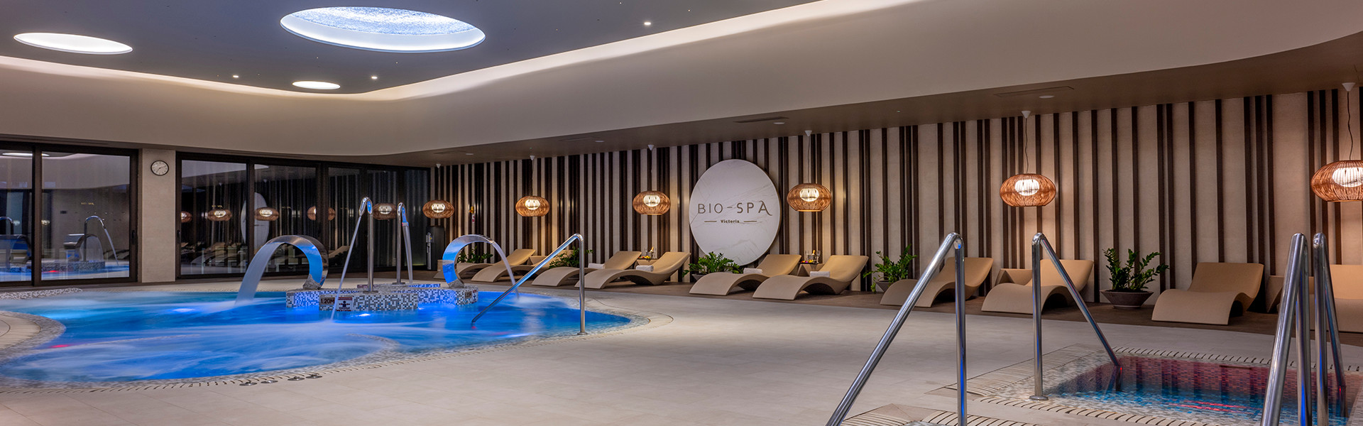 Das Bio-Spa Victoria wurde 2019 bei den renommierten World Luxury Spa Awards mit dem Titel "Best Spa in the World" und "Best Ecological Spa in Europe" ausgezeichnet. Seine umfangreichen Einrichtungen umfassen mehr als 900 Quadratmeter und beinhalten das exklusive Air Bio-Spa, das sich in der obersten Etage des Hotels befindet. Von dort aus können Sie eine atemberaubende Aussicht in einer ruhigen Umgebung mit einem Whirlpool, eine Sauna, Erlebnisduschen und einen Massagebereich genießen. Außerdem bietet es ein spezielles konzipiertes Familienerlebnis, bei dem Erwachsene und Kinder gemeinsam in einem privaten und exklusiven Spa entspannen können.