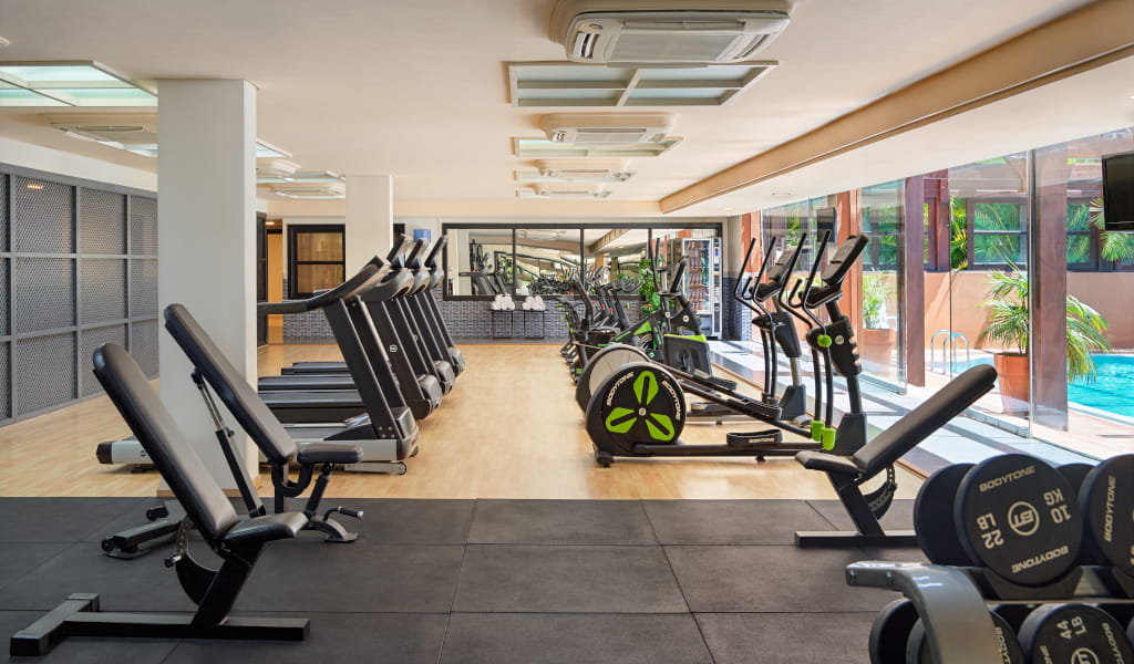 - Fitnessraum mit Cardio-, Aerobic- und Krafttrainingsgeräten.