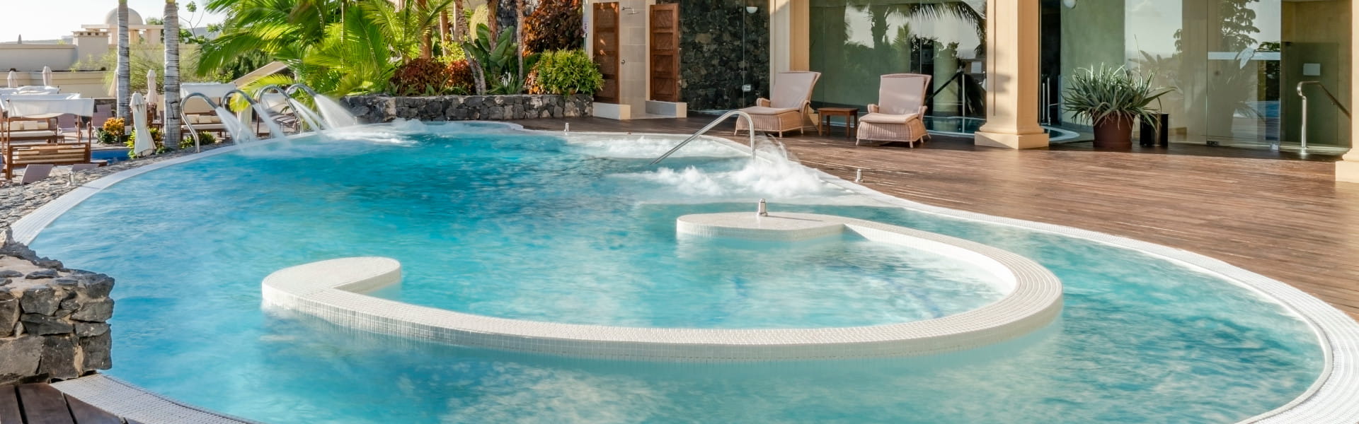 - Thalassa Rundgang: Aktives Freibad mit Hydromassageliegen, Schwanenhälsen und Gegenstromanlage, ideal zur Entspannung der Muskeln und zur Aktivierung des Kreislaufs.