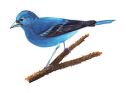 Der obere Teil ihres Kopfes ist kobaltblau und ihre Flügel und ihr Schwanz besitzen eine indigoblaue Färbung. Im Gegensatz dazu ist ihr Rücken grün und das Gefieder der Unterseite gelb. Diese Art gibt es nur auf den Kanaren und in Nordafrika. Mit Vorliebe hält sie sich in den Ginsterlandschaften des Nationalparks El Teide auf, wo sie auf der Suche nach kleinen Wirbellosen ist.