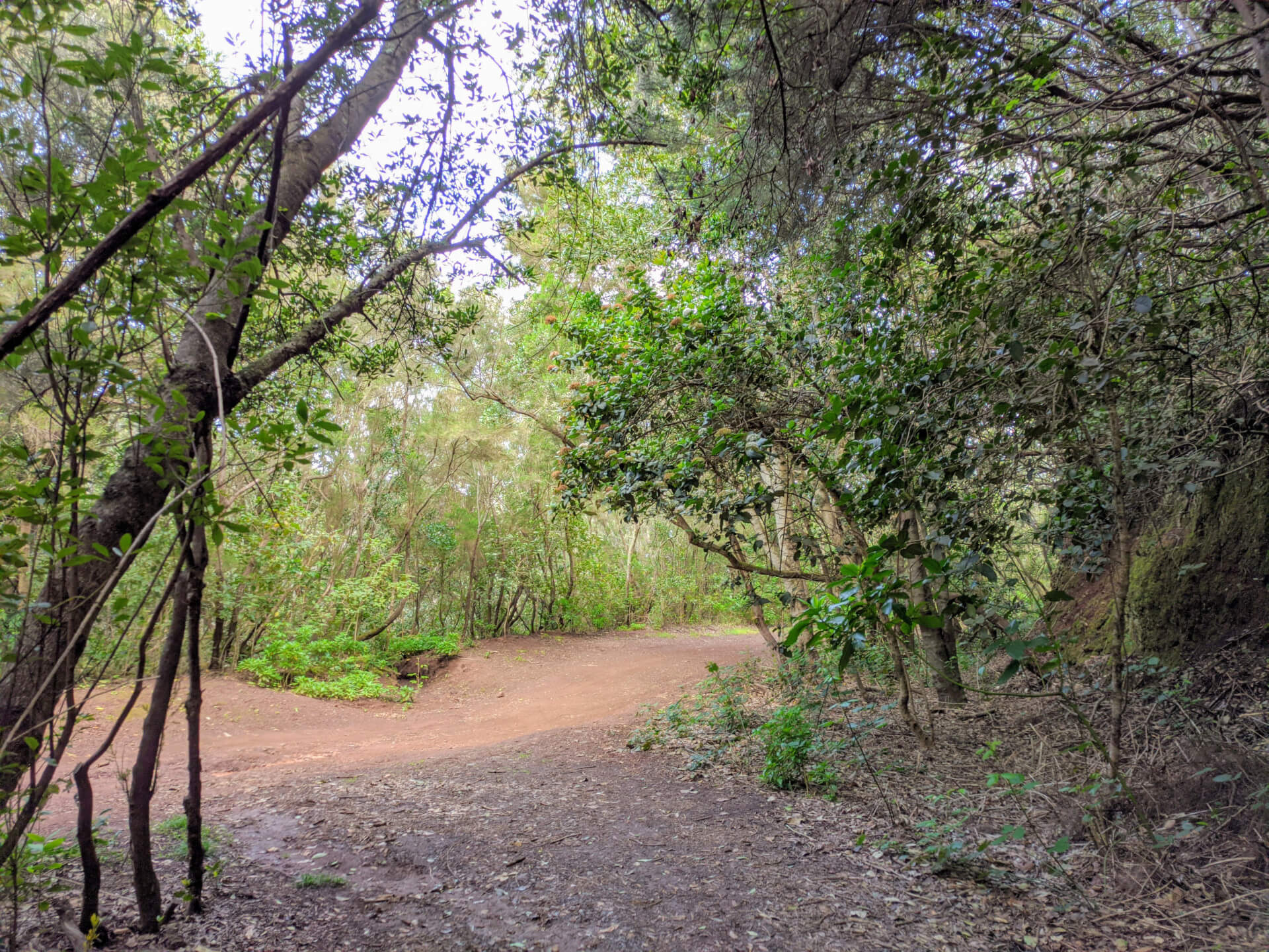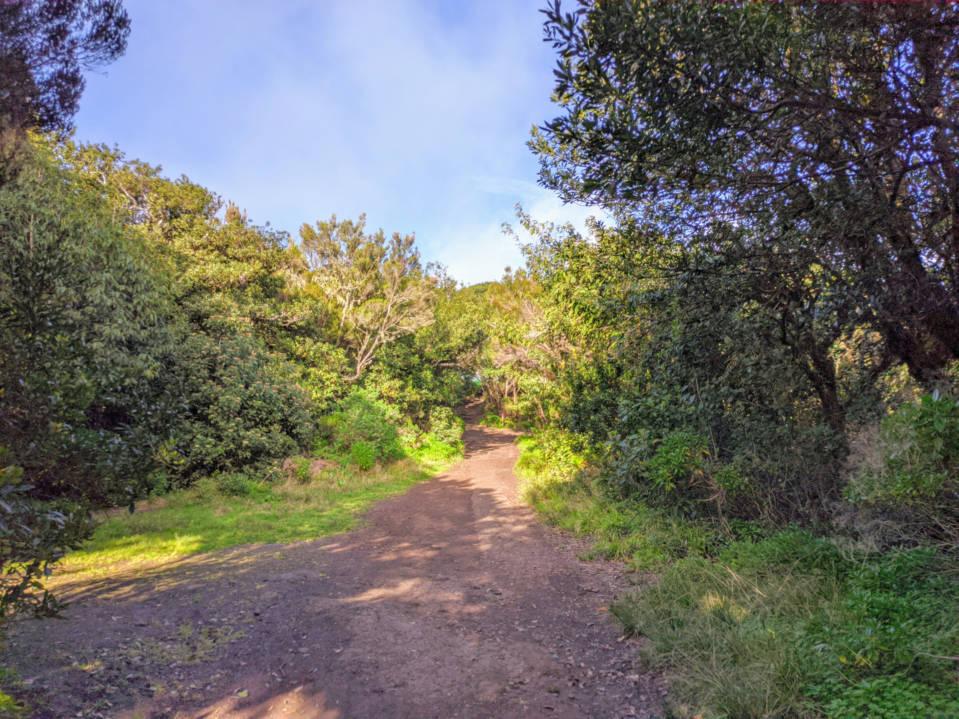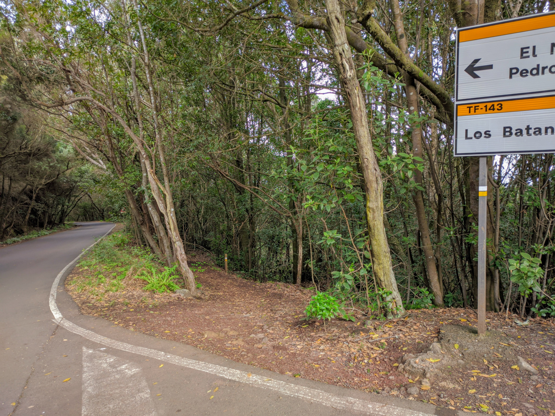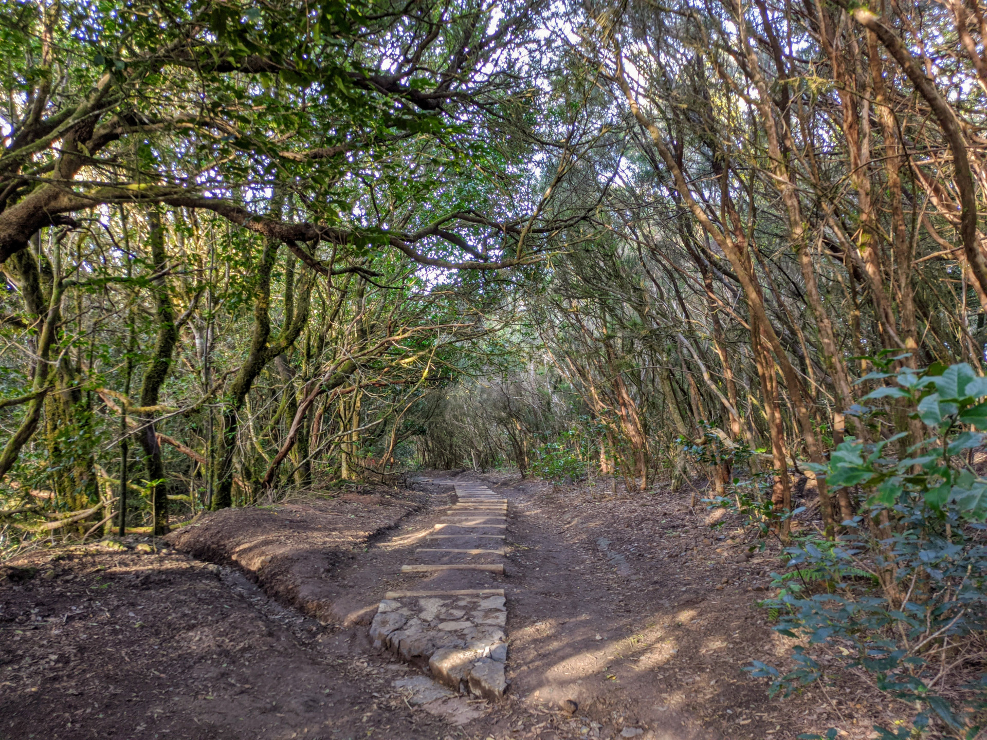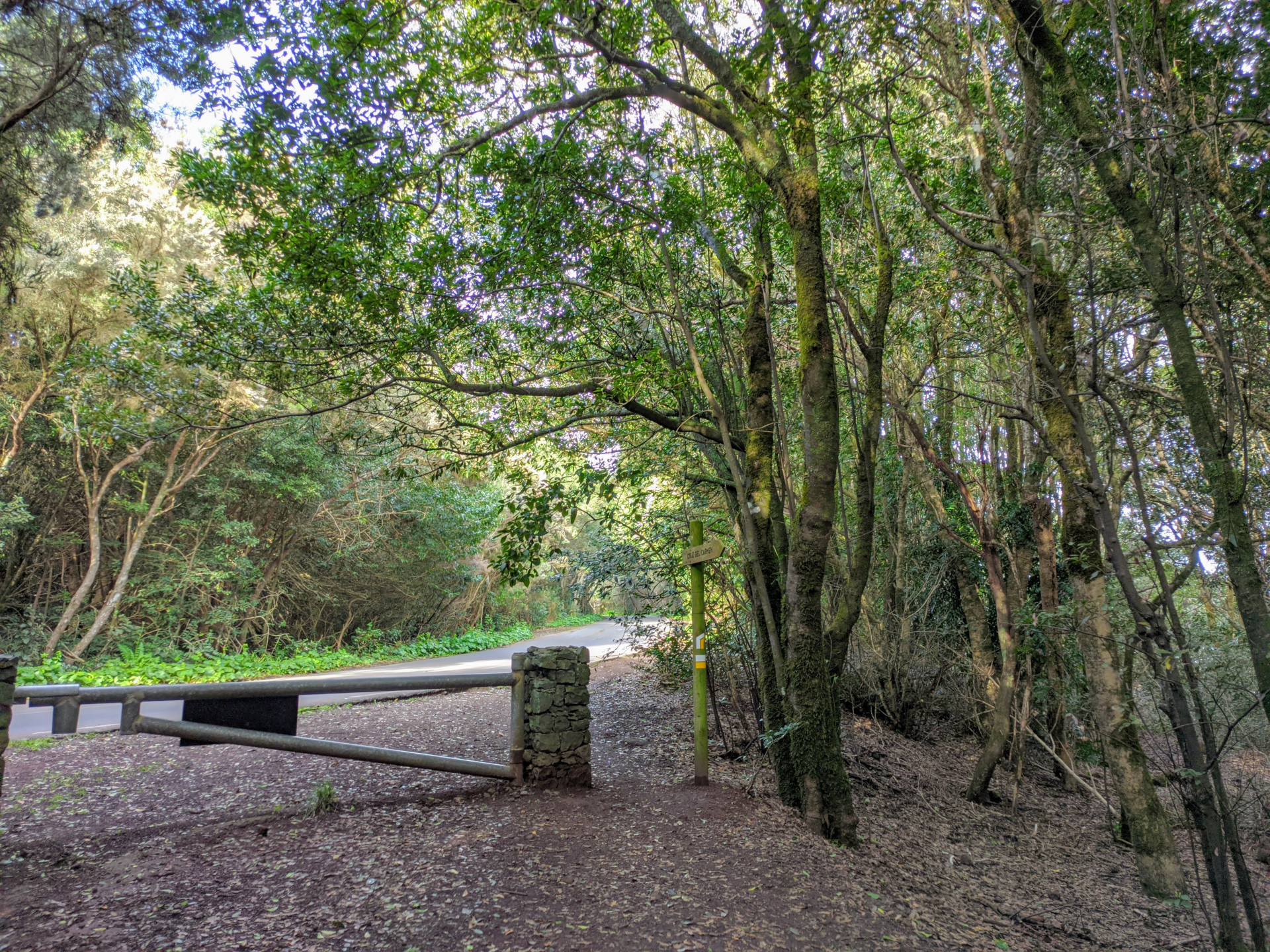 - KM 9.1 Auf der linken Seite beginnt der Anstieg zum Weg nach Las Hiedras (Vorsicht, scharfe Kurve). Der erste Teil ist eine breite Zementstraße, dann endet sie und ein Pfad beginnt. Nach und nach gelangen wir in einen Lorbeerwald, der das ganze Jahr über grün und feucht ist