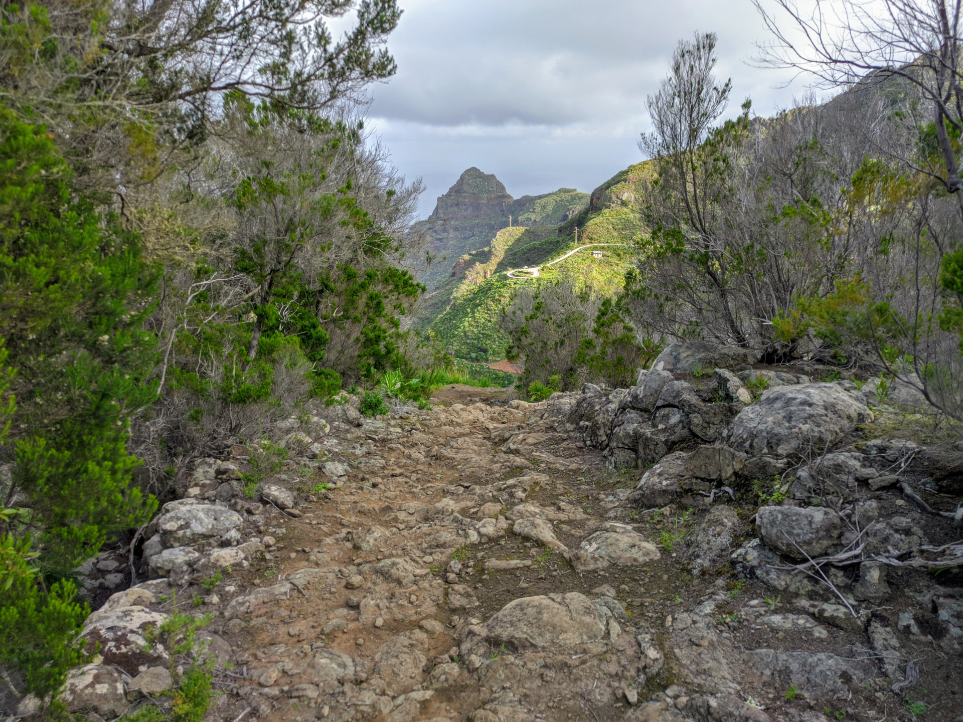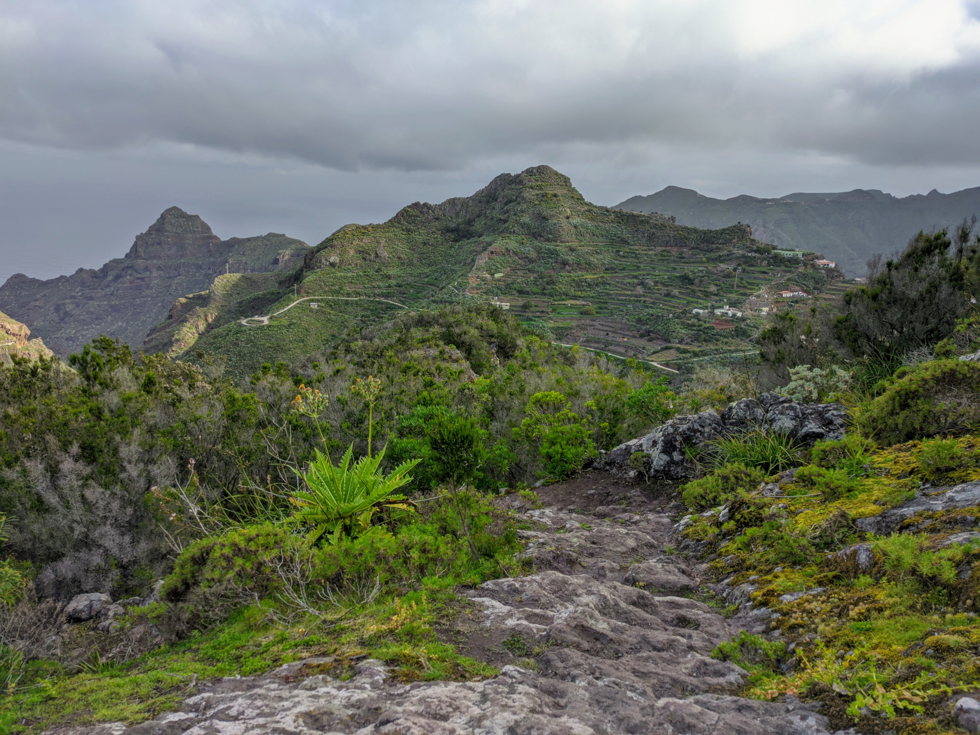 Der erste Teil verläuft durch den oberen Teil des Anaga-Massivs. Die Vegetation ist üppig, feucht und grün, ein Lorbeerwald. Es gibt viele Tage im Jahr, an denen das Gebiet feucht ist, und bei diesen Gelegenheiten ist es noch schöner, weil das Grün der Vegetation hervorsticht. In den tiefergelegenen Teilen hingegen ist die Vegetation karg und bietet Ausblicke auf die Landschaften der Region.
