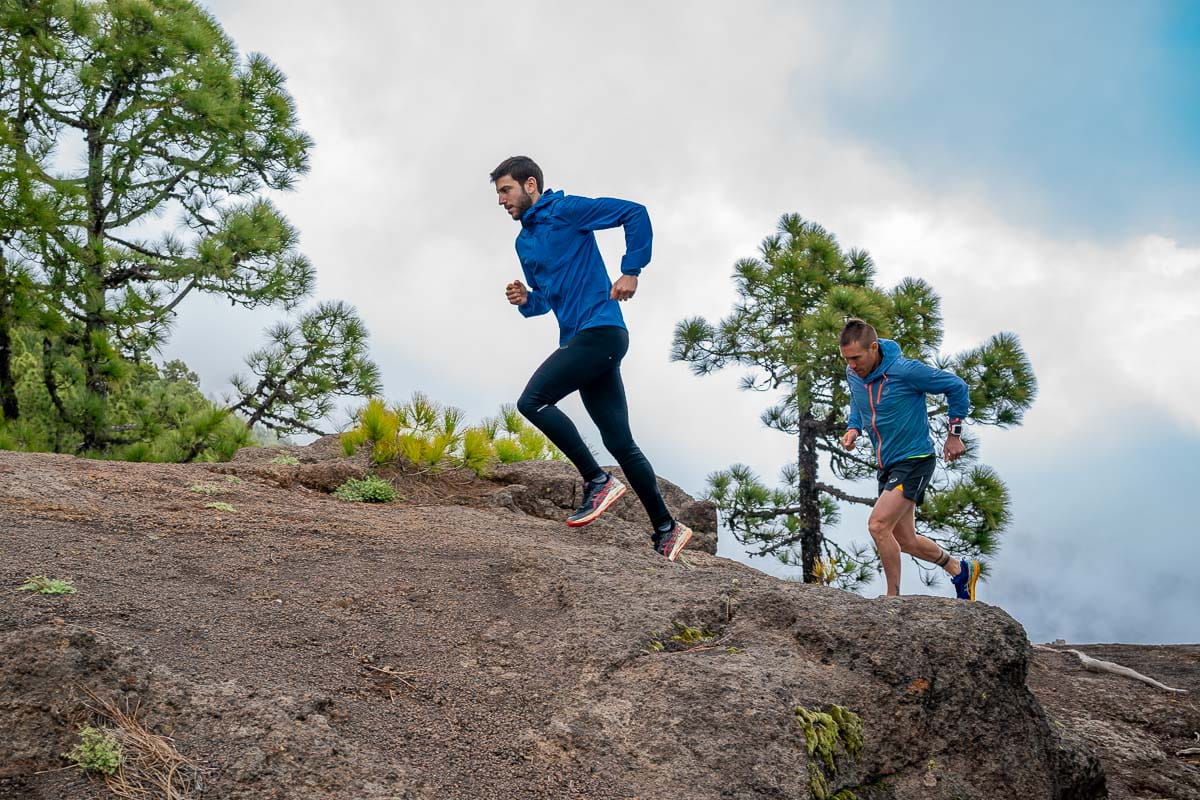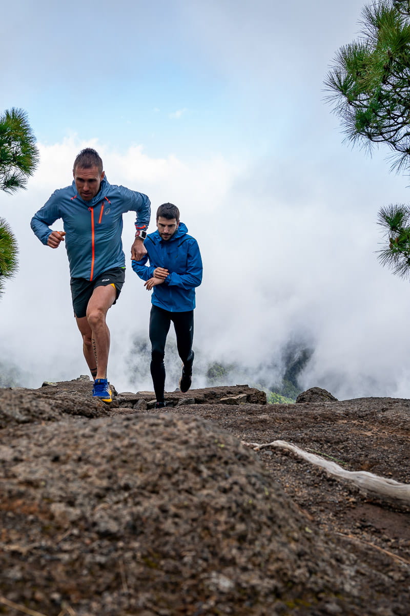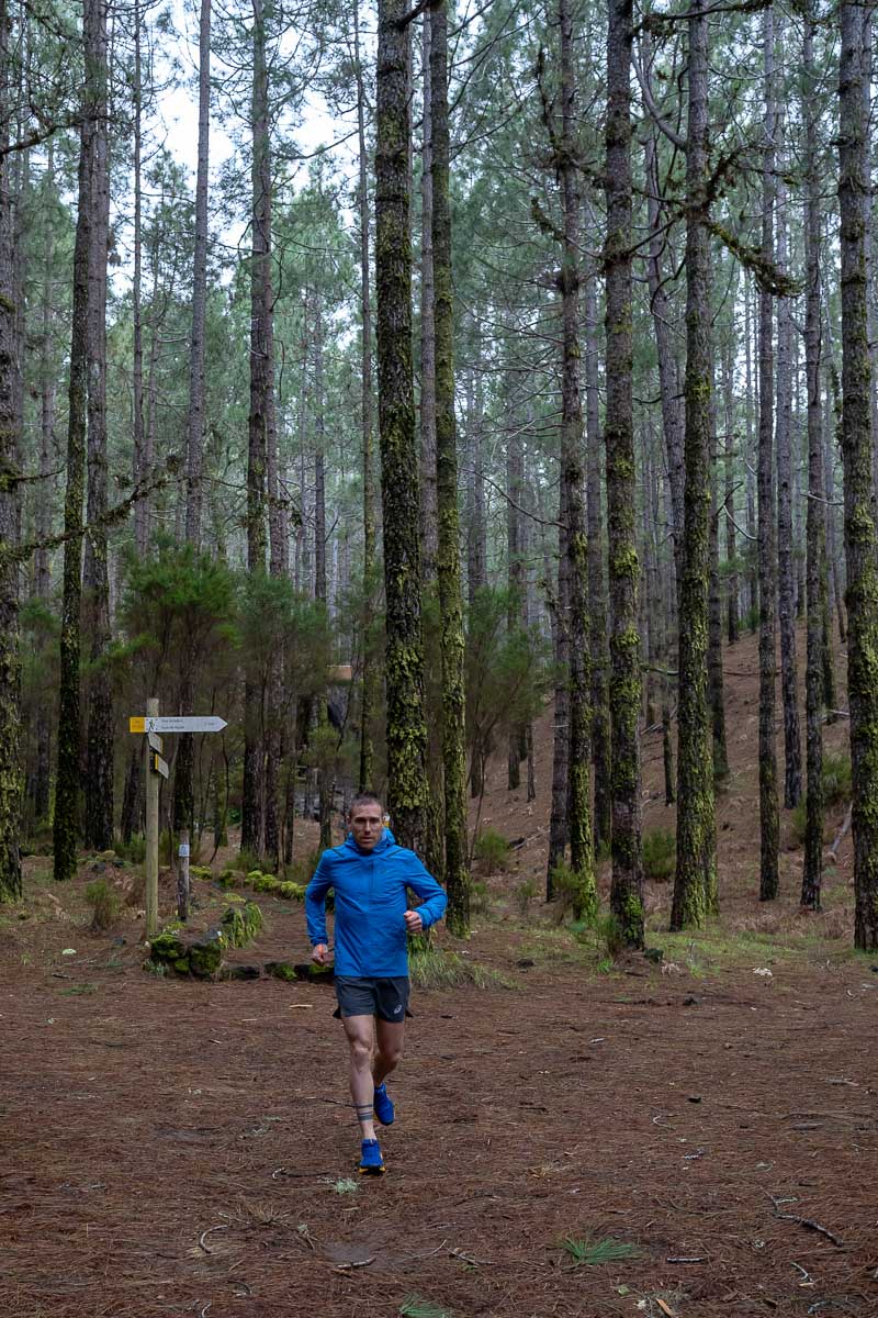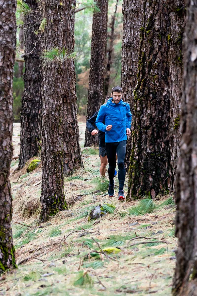 - Km 2,8 Nach der Überquerung der Pino Carretón-Piste sehen wir, dass die PR-Weg zwei Abzweigungen hat, wir müssen rechts weiterlaufen (Richtung Las Lagunetas). Ab hier gibt es einige steile Abhänge, die wir je nach Kondition gehend bewältigen müssen, aber wir können dies nutzen, um abwechselnd zu joggen und zu gehen, ein weiterer Aspekt des Trainings.