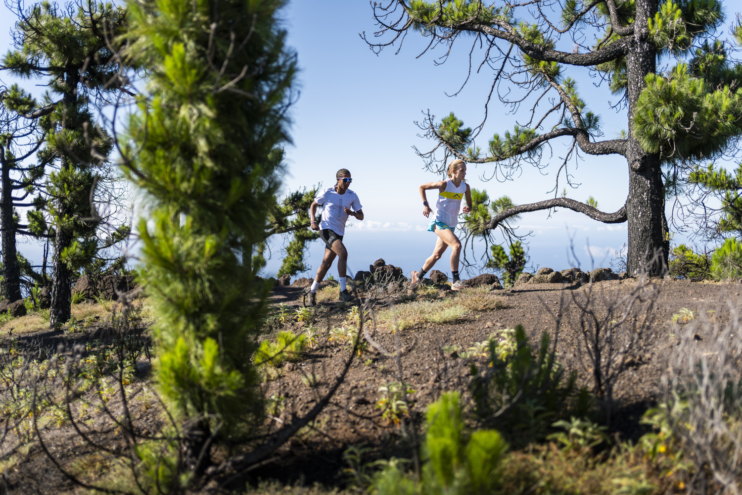 - Km 2,8 Nach der Überquerung der Pino Carretón-Piste sehen wir, dass die PR-Weg zwei Abzweigungen hat, wir müssen rechts weiterlaufen (Richtung Las Lagunetas). Ab hier gibt es einige steile Abhänge, die wir je nach Kondition gehend bewältigen müssen, aber wir können dies nutzen, um abwechselnd zu joggen und zu gehen, ein weiterer Aspekt des Trainings.