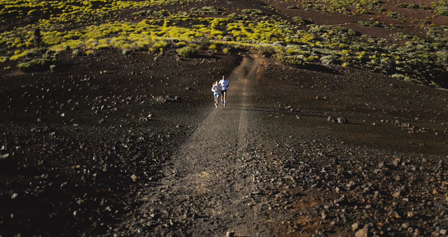- Km 7,3 Wir überqueren die Straße und folgen dem Weg gegenüber, der weiter bergauf führt. Von der Spitze des Hangs aus hat man einen herrlichen Blick auf den Teide im Hintergrund. Sie können gleichzeitig laufen und nach vorne schauen.