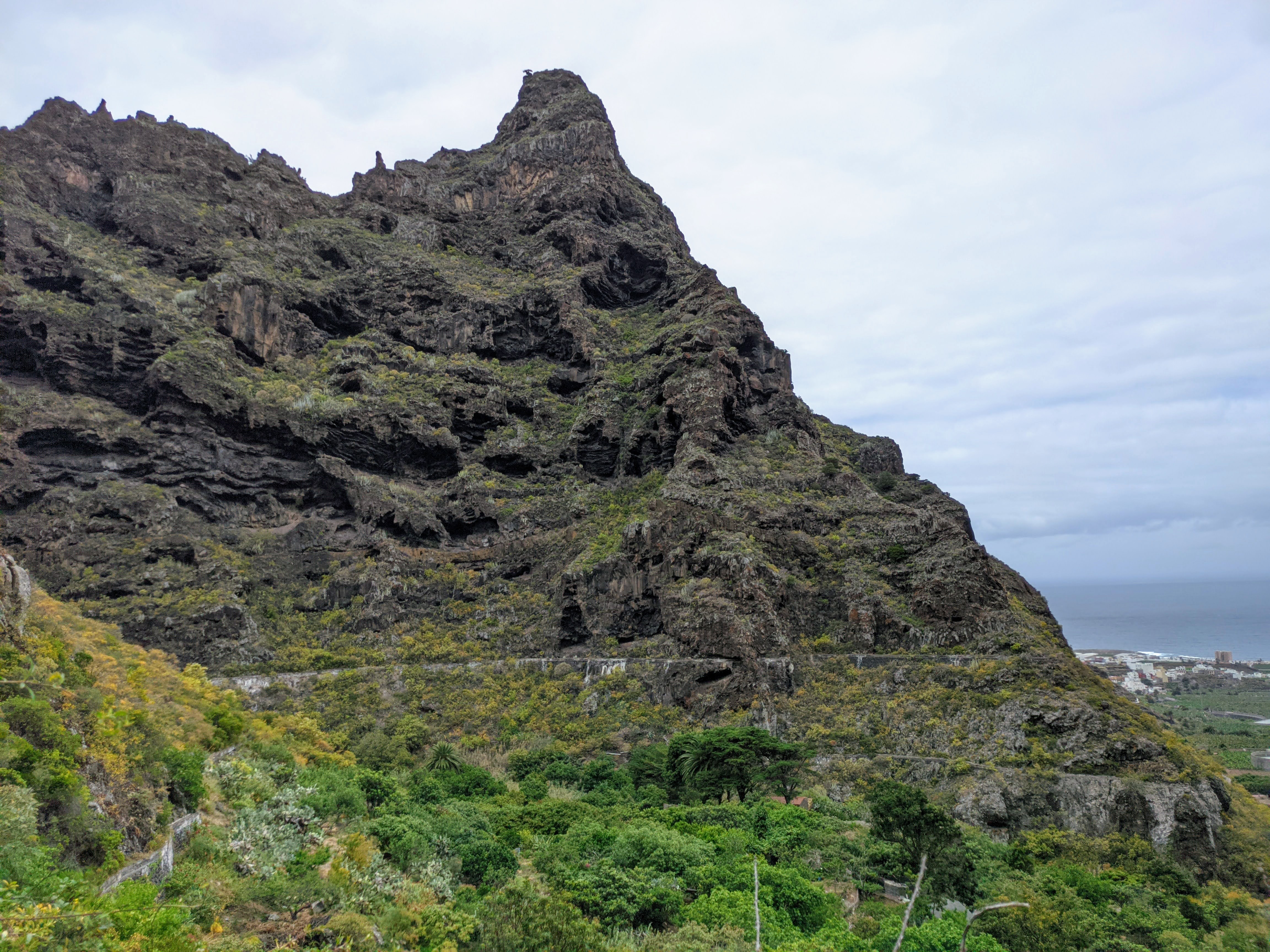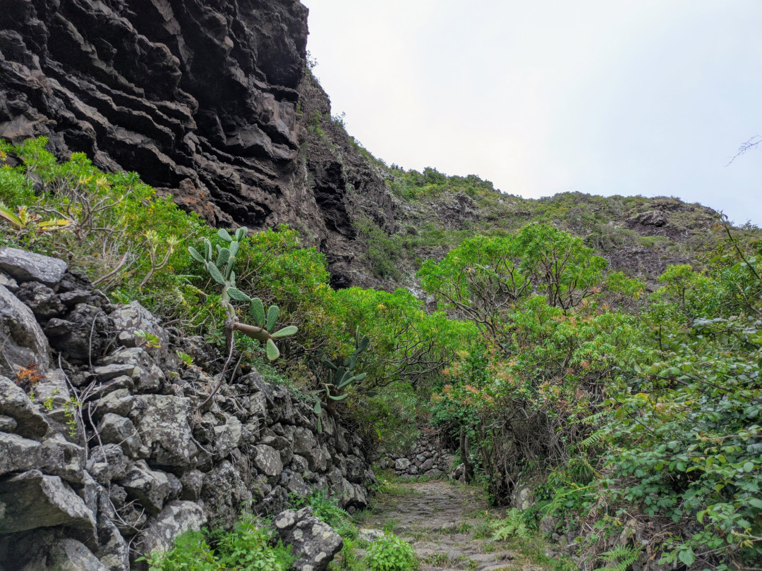 - Km 2 In diesem Bereich sehen Sie links (in Ihrem Rücken) die Klippe, die Cuevas Negras ihren Namen gibt. Die Erosion hat einen beeindruckenden Anblick hinterlassen, und es ist nicht verwunderlich, dass einige der Guanchen (Einheimischen) diesen Ort zum Leben gewählt haben.
