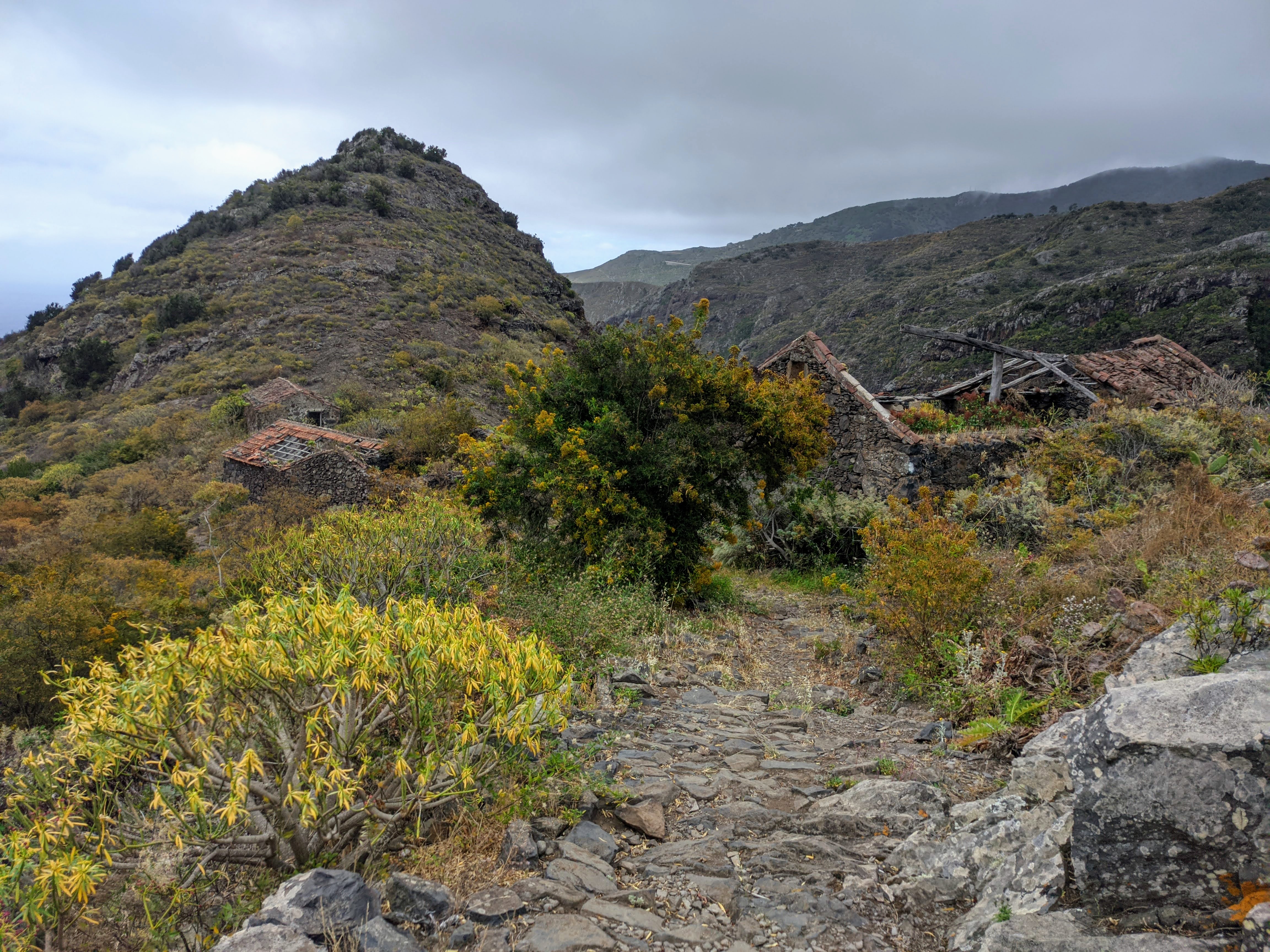 - Km 13,7 Sie passieren den Weiler Las Moradas, von dem nur noch einige verlassene Häuser übrig sind, die aber ihren Charme haben.