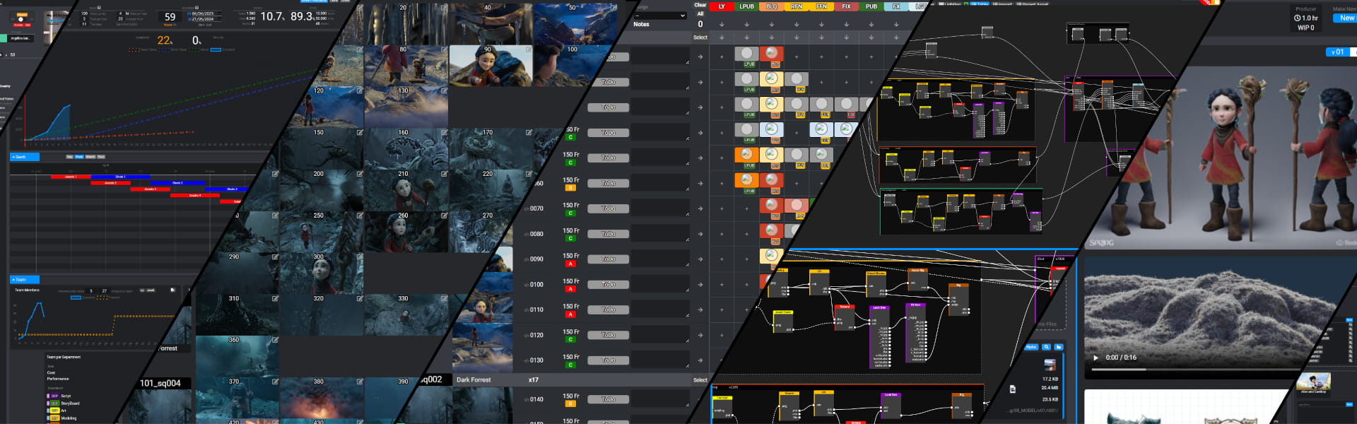 Ihre Lösungen decken die gesamte Produktionskette ab, von der Produktionsplanung bis zur endgültigen Lieferung an den Kunden, über Abstimmung der Skripts, Story, Anlagenverwaltung, Rekrutierung und mehr.