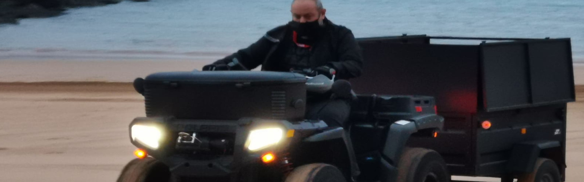 Transport bei Dreharbeiten mit Quads und Anhängern.