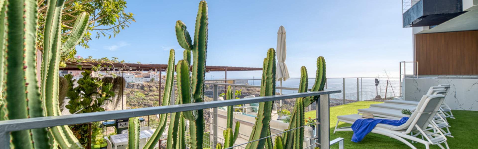 Die Außenterrasse ist nach Süden ausgerichtet und verfügt über einen wunderschönen beheizten Swimmingpool das ganze Jahr über, Grill, Gartenset, Hängematten und Sonnenliegen, um die Sonne zu genießen und von wo aus Sie einen schönen und ruhigen Blick auf die Stadt und das Meer genießen können. Das Haus verfügt über einen Parkplatz für zwei Autos.