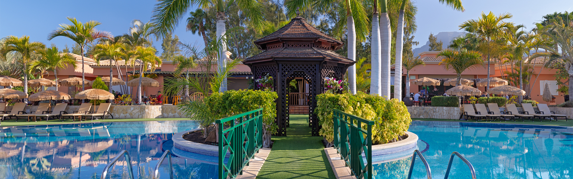 Das Green Garden Resort ist im kolonialen Stil erbaut und grenzt an das Clubhaus des Golfplatzes Las Américas. Das Resort wird von dem Weg des Golfloches 6 umschlossen und ist inmitten eines wunderschönen tropischen Gartens gelegen, in dem besonders eine zahlreiche Sammlung von majestätischen Königspalmen hervorsticht. Das Green Garden Resort ist auf zwei Etagen errichtet und verfügt über 121 Apartments mit einem oder zwei Schlafzimmern und komplett eingerichteten und dekorierten Zimmern, einem Wohnzimmer/Esszimmer, Badezimmer... Küche mit (Keramikfläche, Ofen, Toaster, Kaffeemaschine etc.)Fernseher, Telefon und Balkon oder Terrasse.