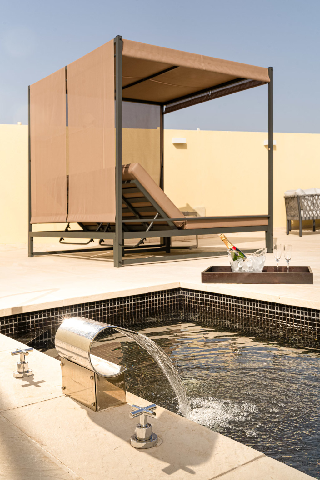 - Duplex-Zimmer auf der obersten Etage mit Meerblick, privater Sonnenterrasse mit balinesischen Liegen, Ruheliegen und kleinem Pool.
