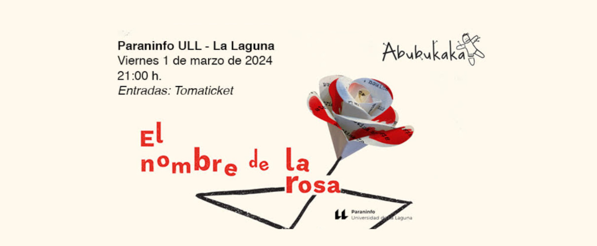 Am 1. März präsentiert das Theaterquartett Abubukaka im Auditorium von Adeje eine humoristische Fassung von Der Name der Rose. Das Stück basiert auf Umberto Ecos historischem Kriminalroman, an dessen Schauplatz, einem mittelalterlichen Kloster, mehrere Morde geschehen. Dabei kann nur ein Mann die verschiedenen Teile des Puzzles zusammenfügen. Das Ensemble Abubukaka versucht, durch die Augen des Protagonisten William von Baskerville, die Wahrheit zu ergründen und zu beurteilen. Dabei hält sich die Aufführung an das Konzept der beiden Handlungsstränge des Romans, würzt diese aber mit einer Prise Humor.